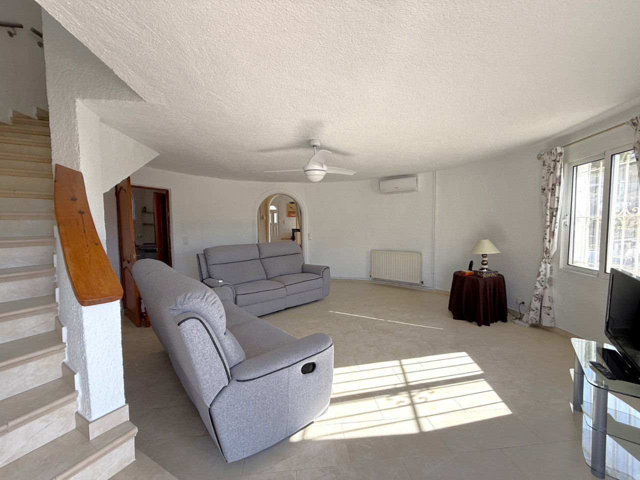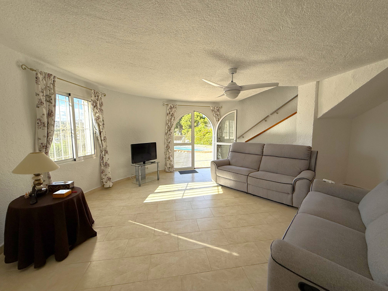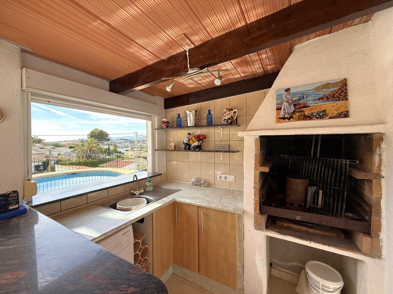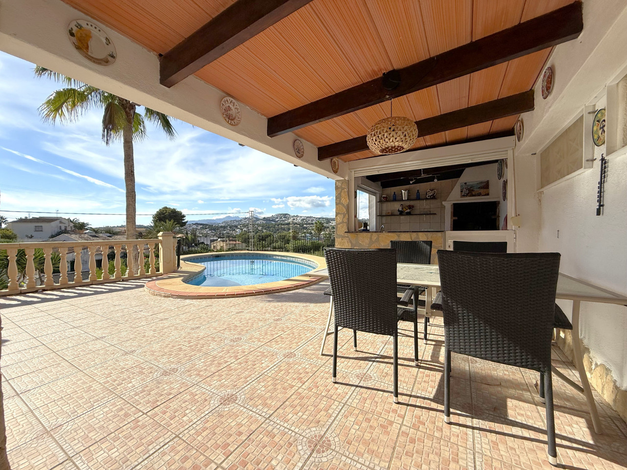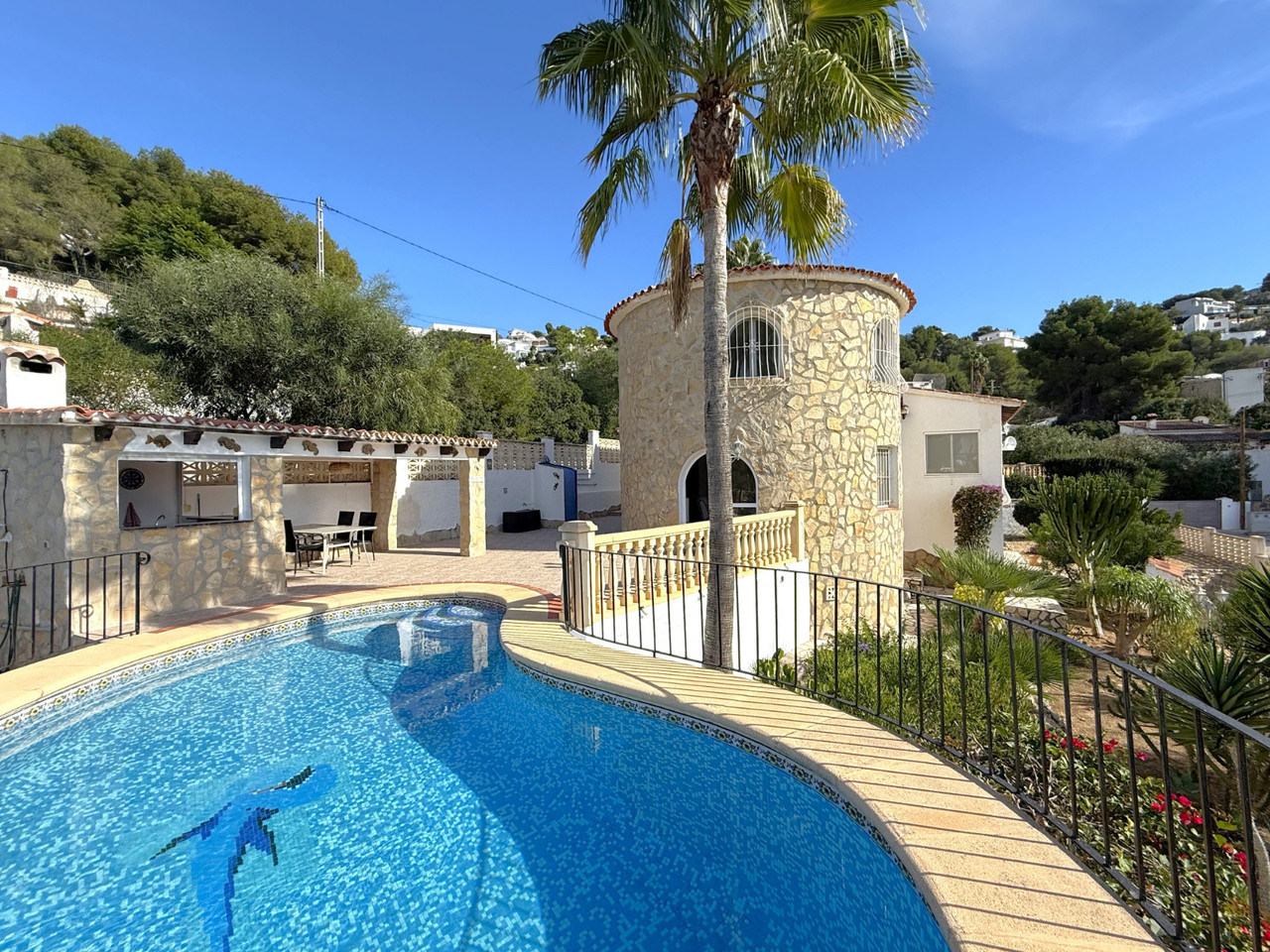 This very well maintained Mediterranean style villa with heated pool and garage is located in Valle del Portet on the outskirts of Moraira, just a short drive to the b…