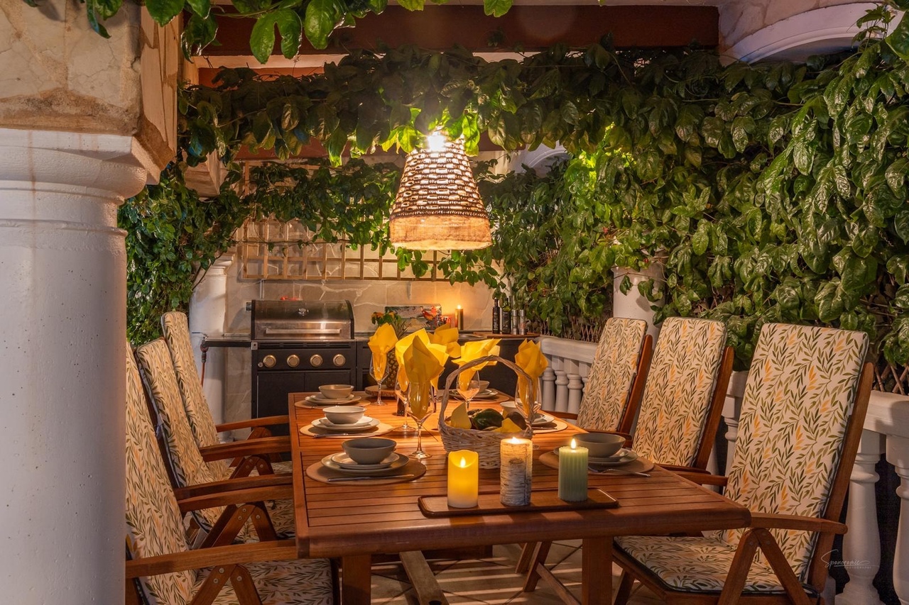The exterior has been crafted for the discerning hedonist. The heart of the garden is the unique L-shaped saltwater pool (9x8 m), complemented by a fully equipped summer kitchen. Featuring a barbecue and hot/cold running water, it is the perfect setting for unforgettable al fresco dining.