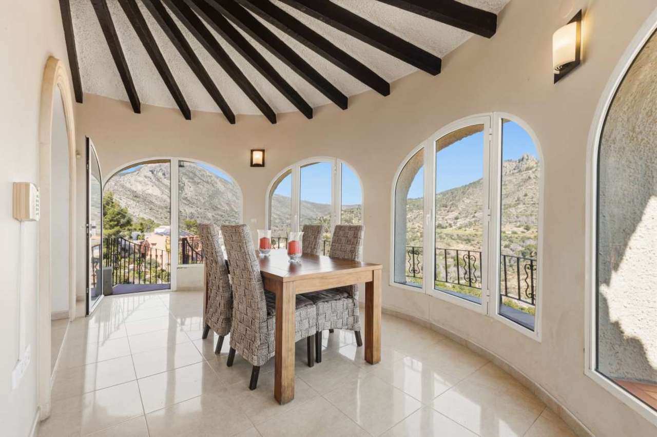 Located in the sought-after residential area of Maryvilla in Calpe, this charming villa offers the perfect combination of privacy, tranquility, and breathtaking panoramic sea views. Set in a peaceful hillside environment, the property is just a short drive from the beach, marina, restaurants, bars, and the vibrant town center, making it ideal both as a holiday retreat and an investment opportunity.Built in 1970 and fully renovated internally in 2012, the villa sits on a generous plot of 1,733 m² with a constructed area of 285 m². The property is distributed over two independent levels, each with its own private entrance, offering excellent flexibility for guests or rental use.The main level features a bright and spacious living area filled with natural light thanks to large windows, a dining area, and a cozy lounge with a fireplace—perfect for relaxing evenings. This floor also includes a fully equipped kitchen, a guest toilet, and a master bedroom with en-suite bathroom.The second level, accessible via stairs, offers a separate living space with its own kitchen, a comfortable living room, two bedrooms, and a bathroom—ideal for hosting family or guests independently.Outside, the villa is designed for enjoying the Mediterranean lifestyle, with a private swimming pool surrounded by a sun deck, a barbecue area for outdoor dining, and convenient parking. Multiple terraces provide stunning open views of the sea and surrounding landscape.This property is an excellent choice as a holiday home thanks to its quiet location, beautiful views, and versatile layout, while also offering strong potential for rental income.